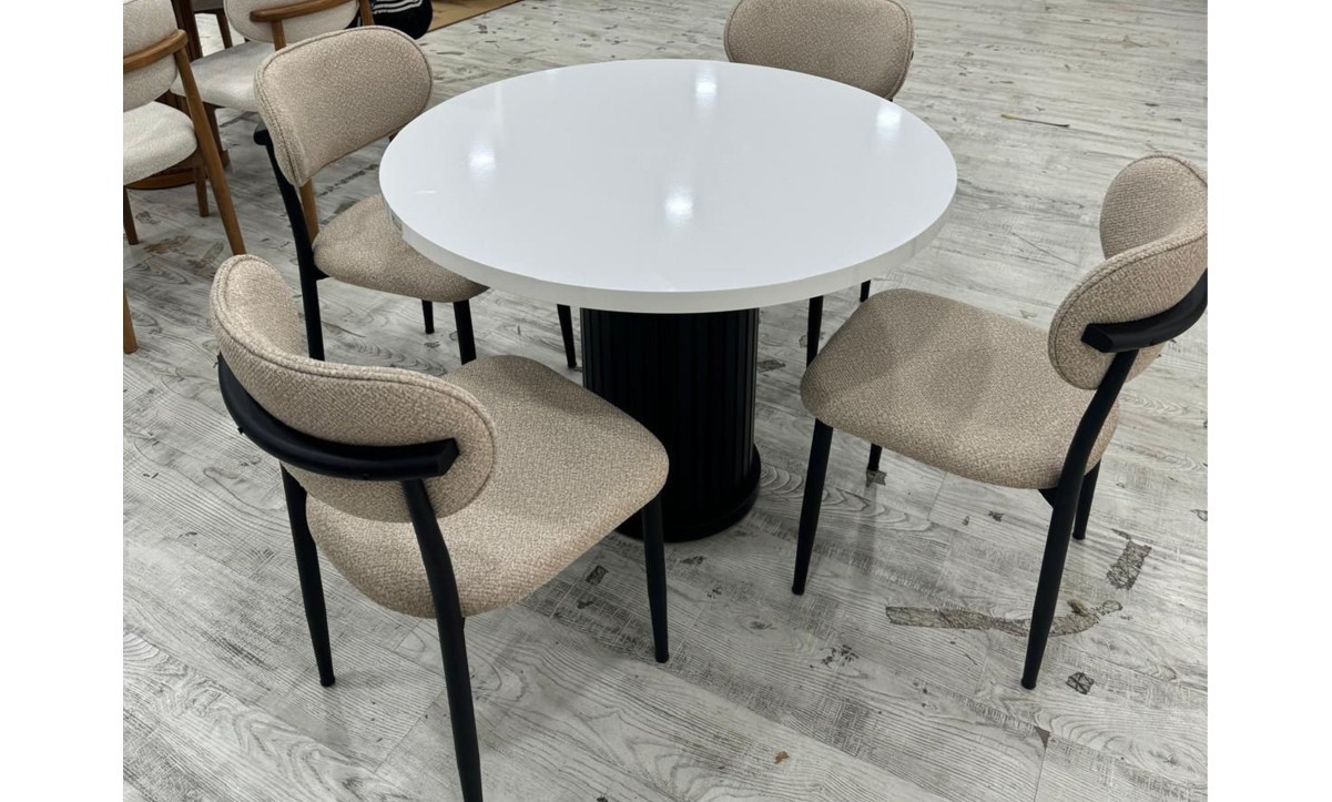 • 410 Royal Yuvarlak Masa Takımı - Beyaz/Siyah Ayak